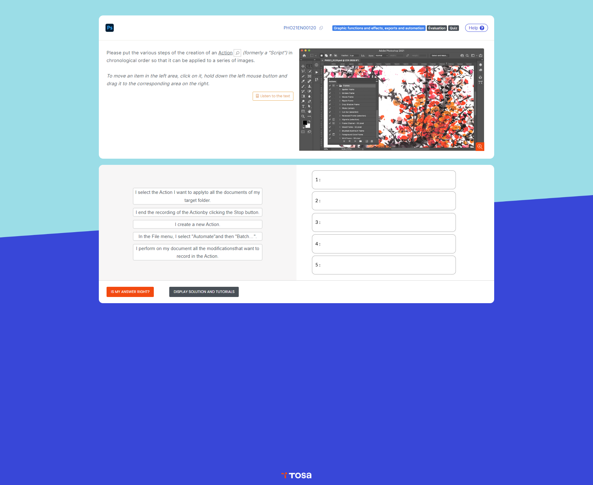 Tosa assessments and certification exams on Adobe Photoshop