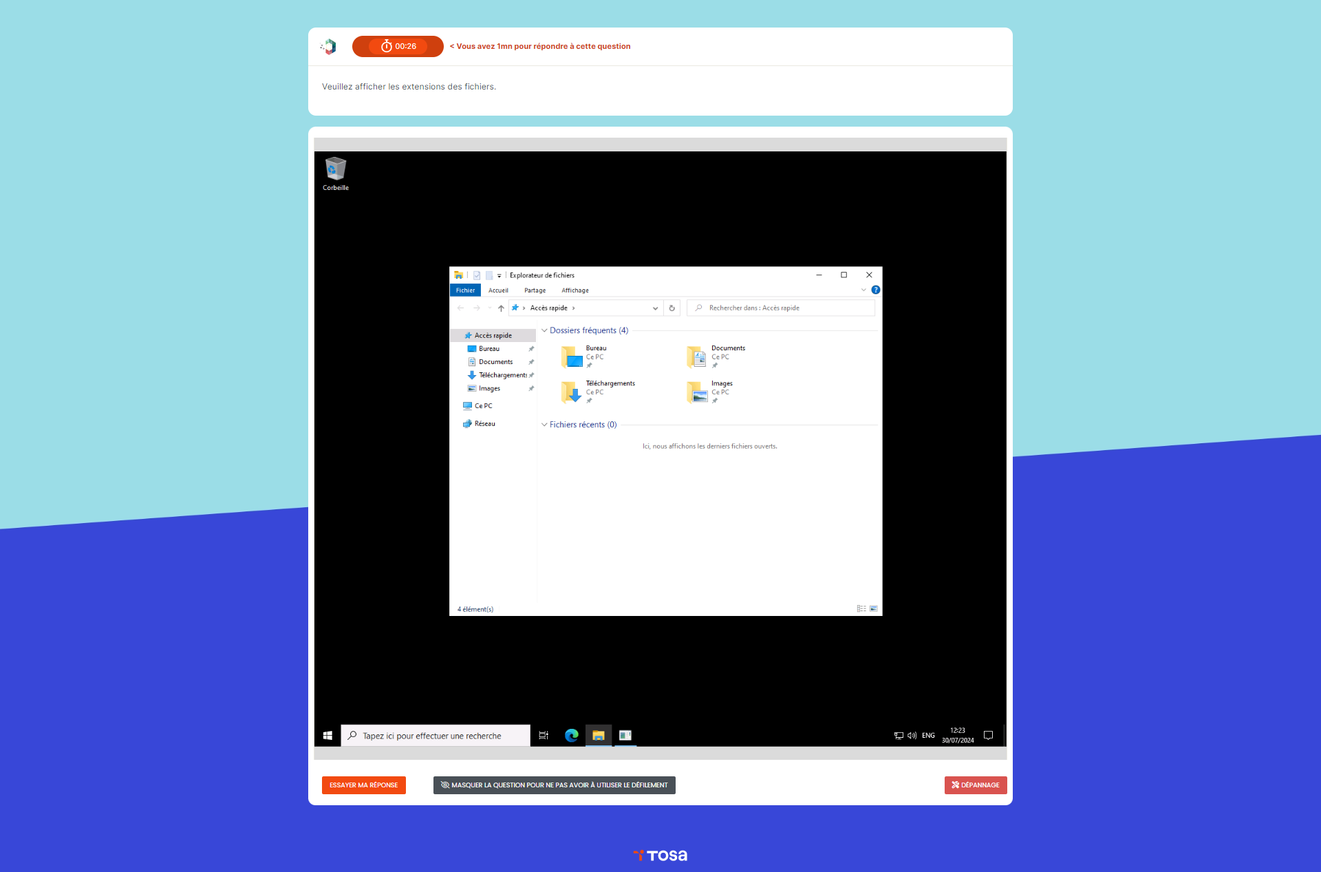 La certification Tosa sur DigComp est composée de 40 questions et dure 1 heure.